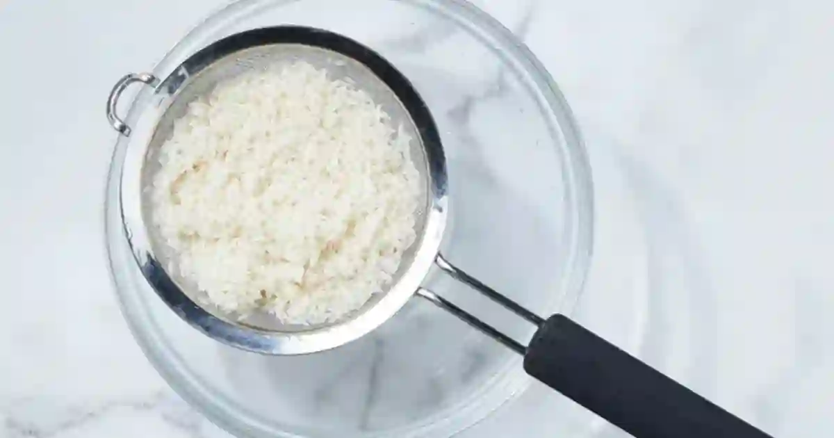 - Add soaked rice and cook until about 70 percent done. Drain immediately and set aside.