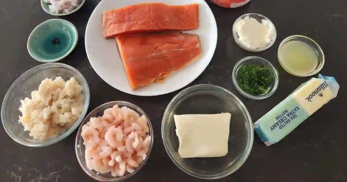 Ingredients for Crab and Shrimp Stuffed Salmon