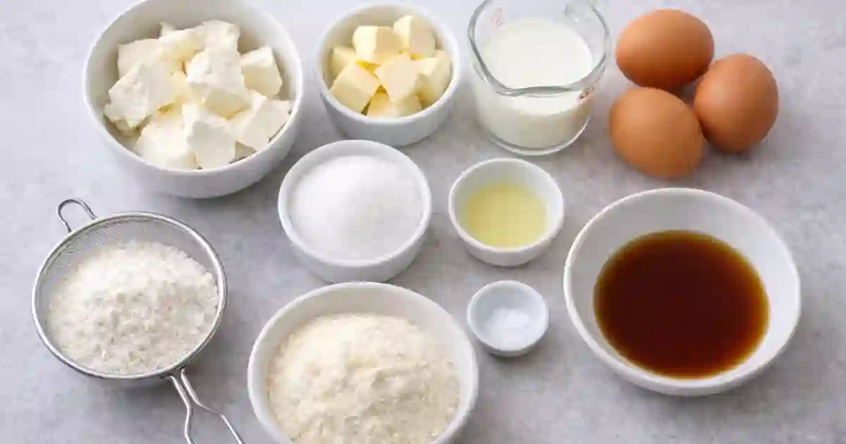 The ingredients used for fluffy Japanese cotton cheesecake cupcakes are simple, but each one plays an important role in creating the famous soft texture. Using the correct proportions helps the cupcakes rise properly while maintaining their delicate structure.