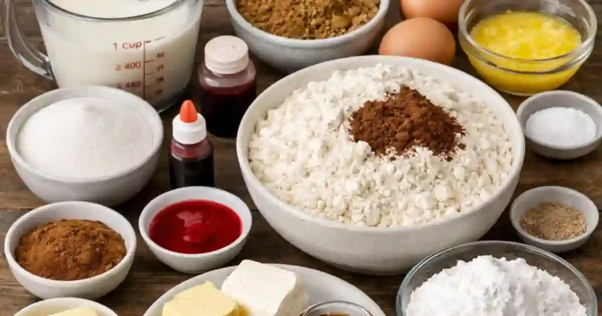 The main ingredient of red velvet is flour, just like most cakes. However, what defines red velvet is not a single ingredient, but the combination of flour, cocoa powder, acidic ingredients like buttermilk or vinegar, and red coloring. This balance creates the subtle cocoa flavor, moist crumb, and distinctive red hue that sets red velvet apart from standard vanilla or chocolate baked goods.